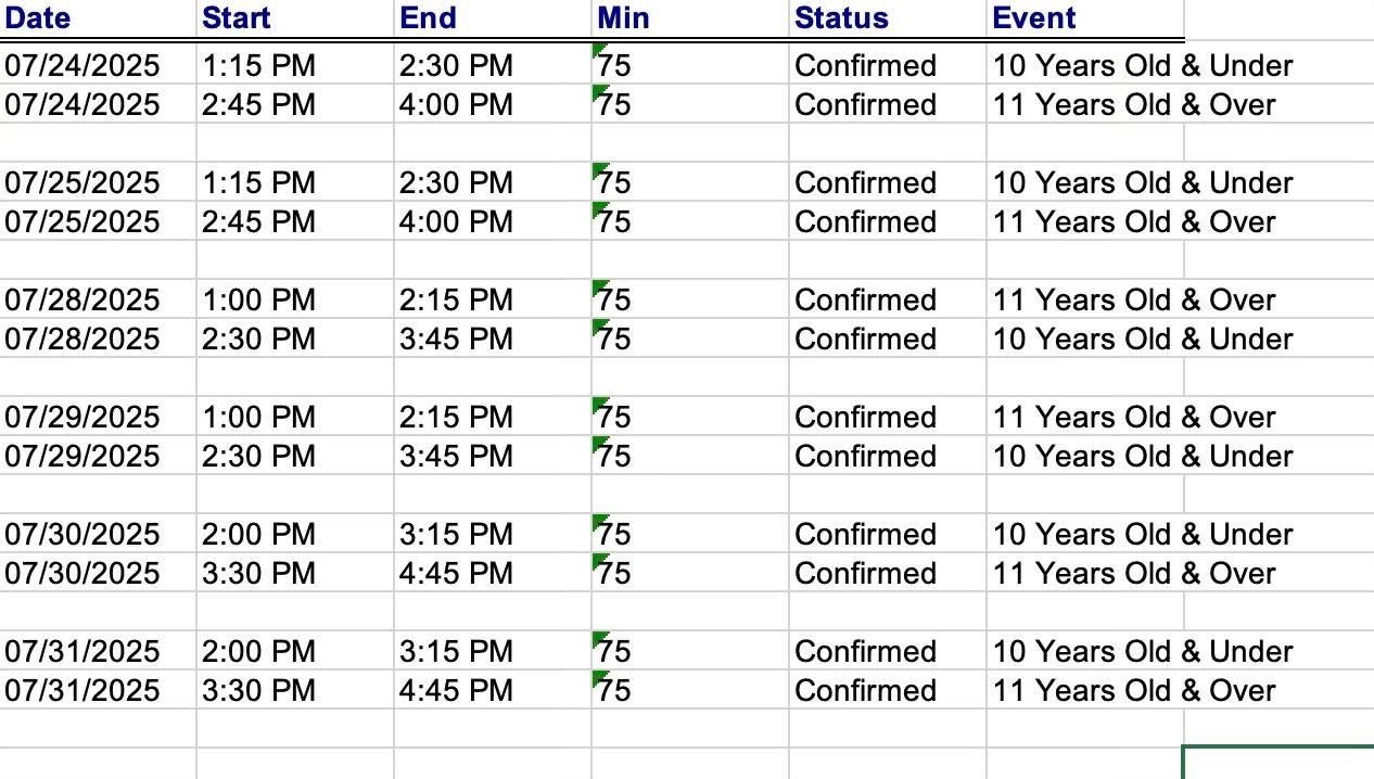 Scheduled Stick and Puck Sessions