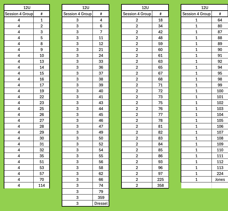 Group assignments will change after every eval skate. Please check back after your skate to get your group assignment for the next scheduled skate.
